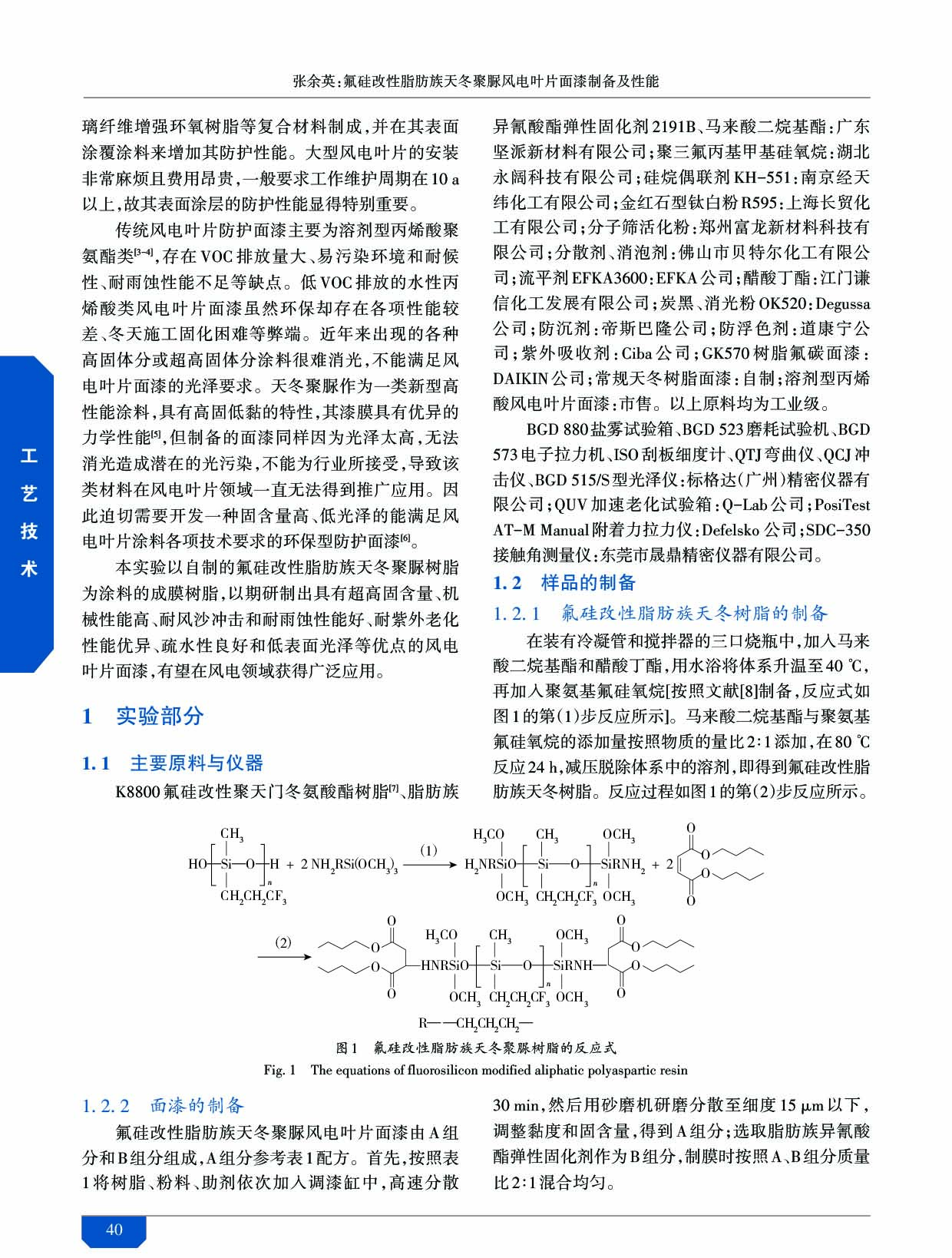 氟硅改性脂肪族天冬聚脲風(fēng)電葉片面漆制備及性能